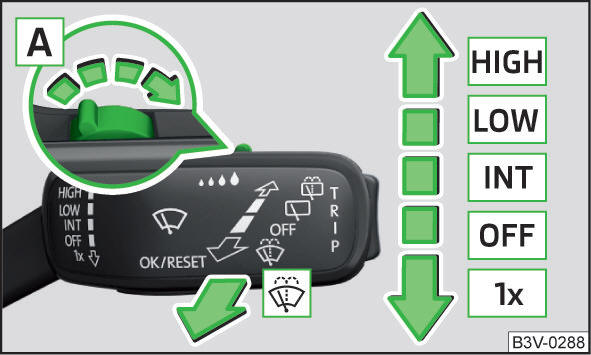 door de instelling van de schakelaar in pijlrichting wissen de ruitenwissers